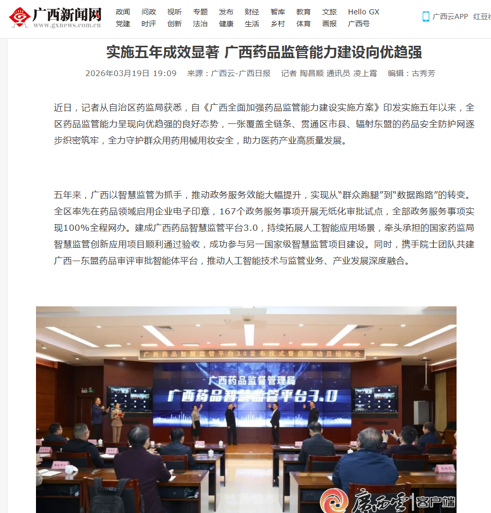 2025年12月31日,广西药品智慧监管平台3.0正式发布。918博天堂 供图